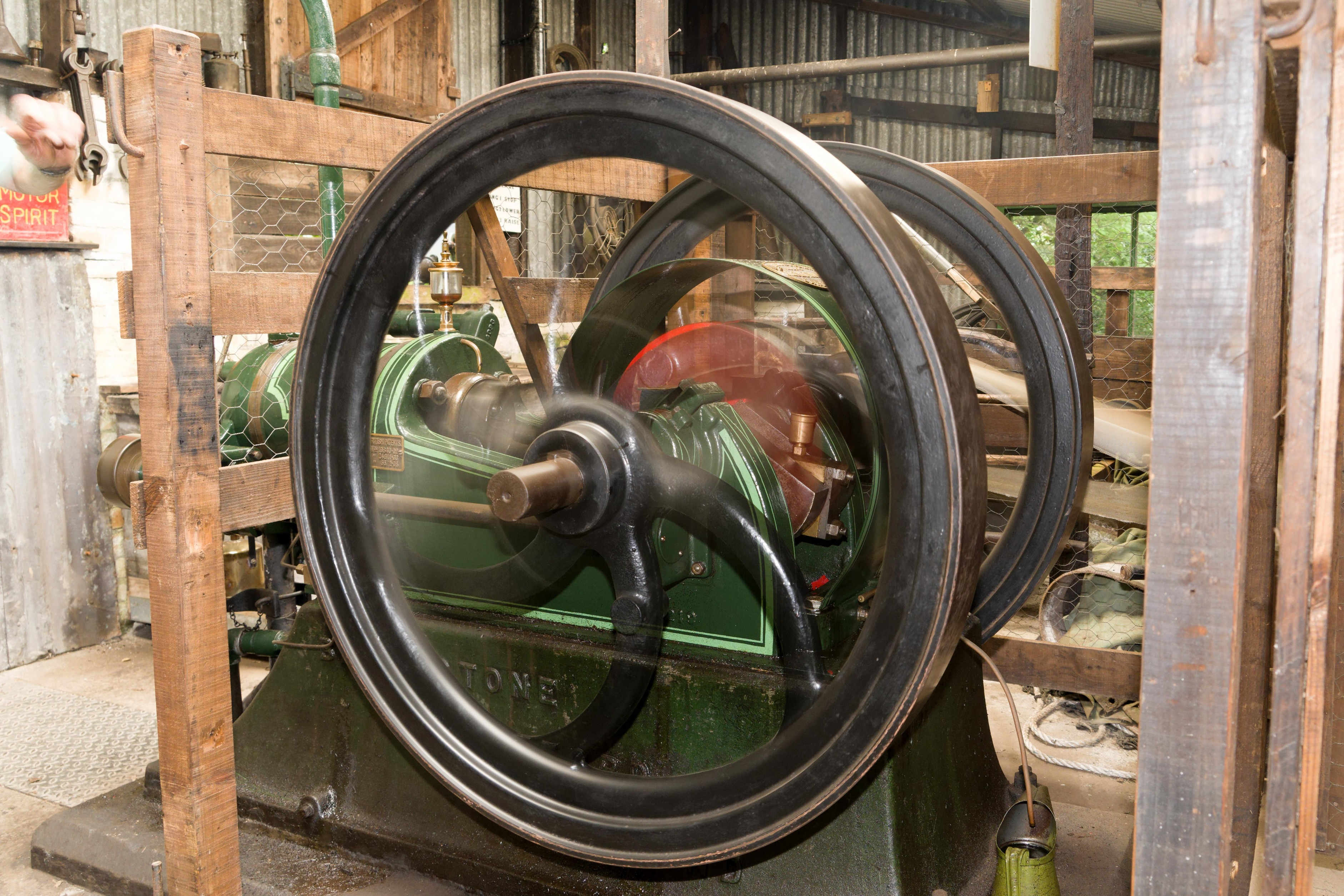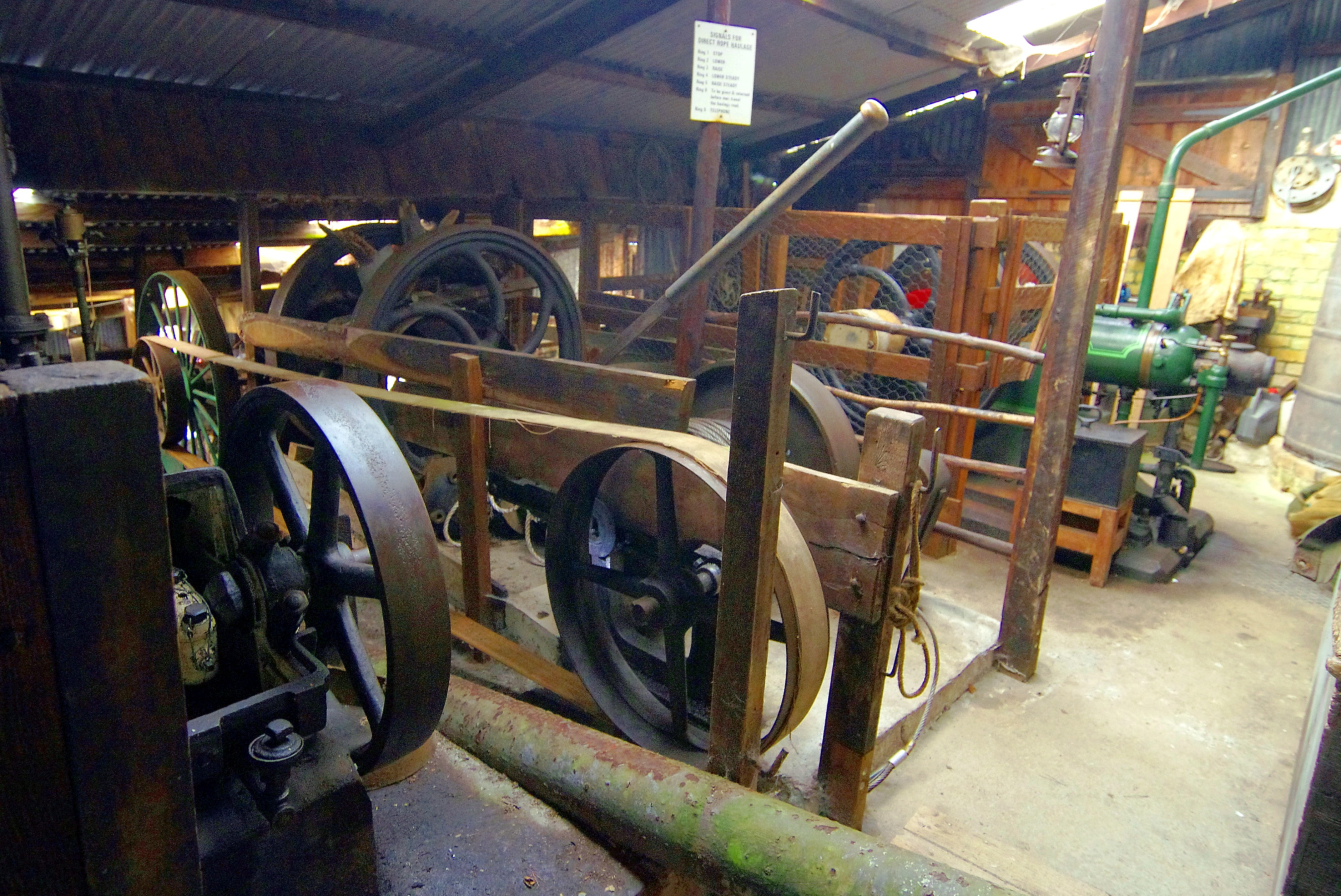 The Turgo turbine and drives, running on the water supply from the turbine pond, with a head of about 70 feet
