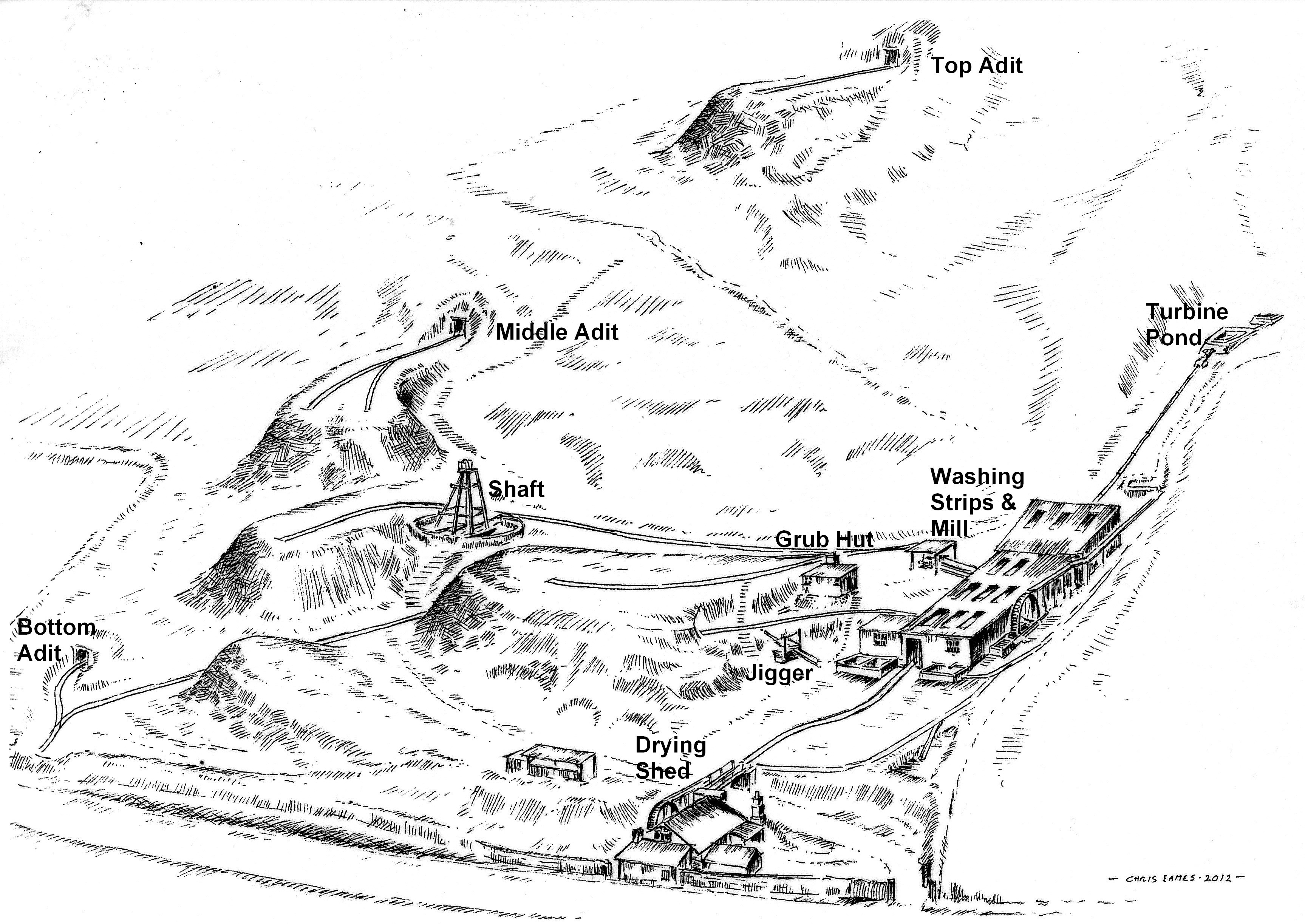 The mine site is today very much as it was in the 1920s to 1940s (click/tap to enlarge)