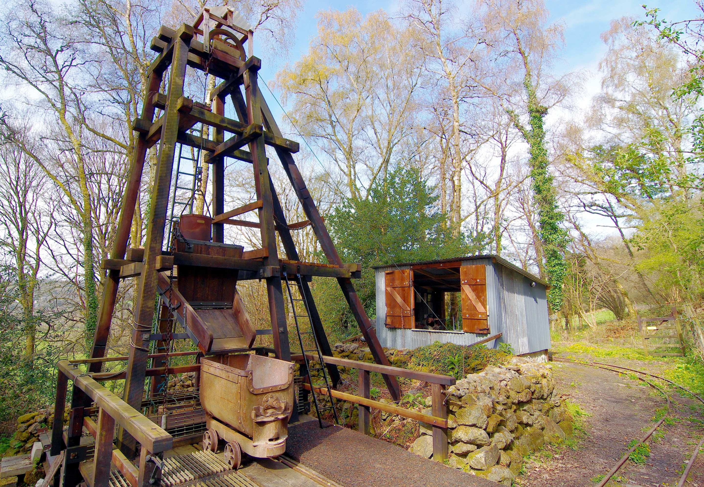 Mining was carried on from this shaft in the 19th and early 20th century. The headframe is a working reconstruction